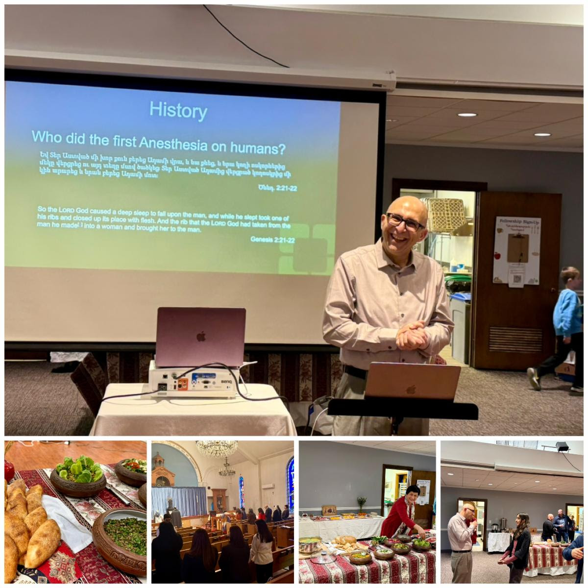 Our featured presentation, “Preparing the Body with Wisdom and Faith — Pain Management, Surgery, and Trust in God’s Care,” was offered by Dr. Rafi Avitsian, Professor of Anesthesiology, Program Director of the Neuroanesthesiology Fellowship, and Vice Chair for Professional Development in the Department of General Anesthesiology, and lenten dinner was hosted by Kristine Baghdasaryan.