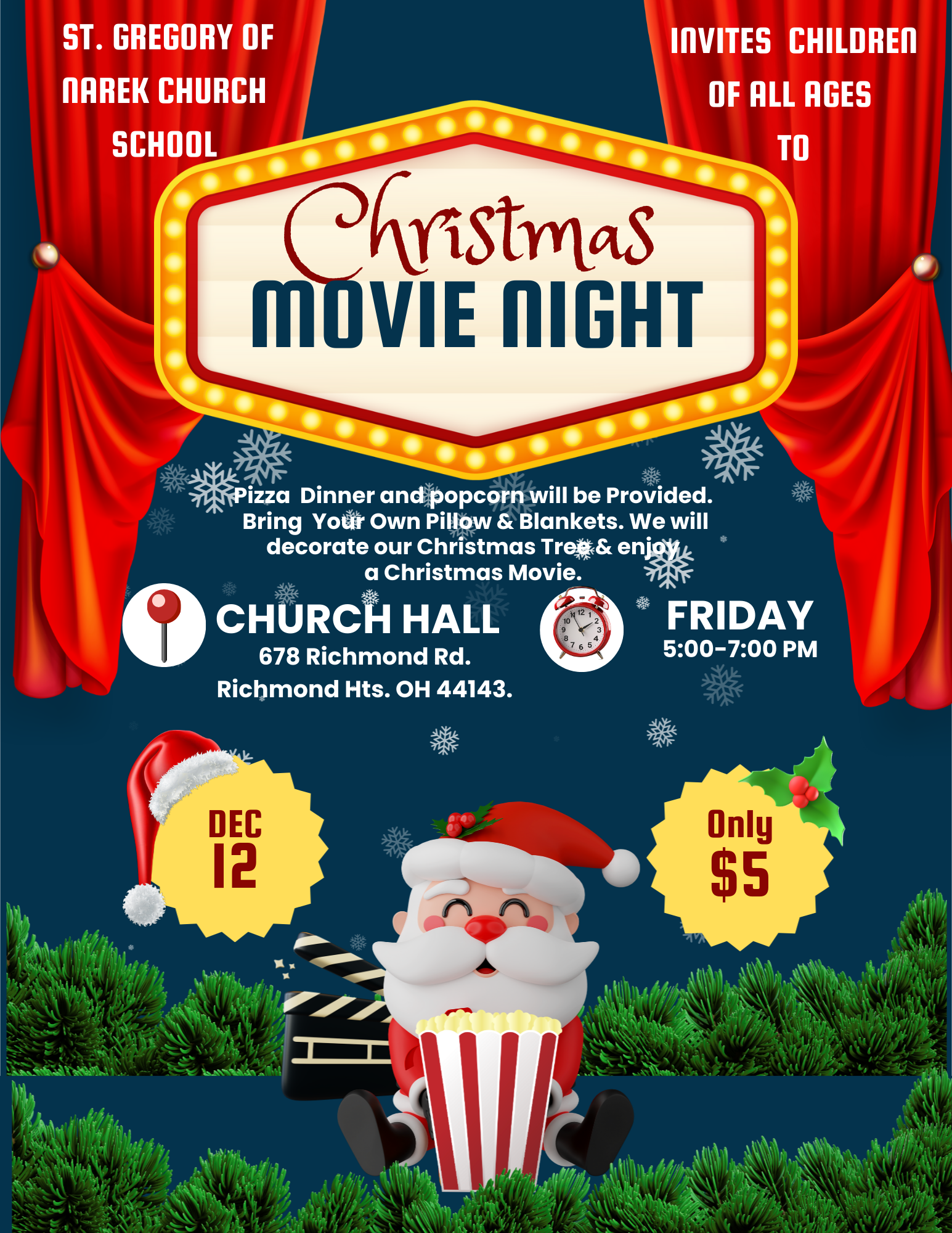 Let’s Dance! Արի պարենք! Sunday | November 30, 2025 12:00 pm 678 Richmond Rd. Christmas Tree Decorating & Movie Night Friday | December 5, 2025 All Day 678 Richmond Rd. KHASH PARTY – ԽԱՇԿԵՐՈՒՅԹ Saturday | December 6, 2025 10:00 am St. Gregory of Narek Church Hall 678 Richmond Rd. Richmond Hts. OH 44143. Sign Up for Our Winter Youth Concert! Saturday | December 6, 2025 6:00 pm St. Gregory of Narek Church - 678 Richmond Rd. Richmond Htsd. OH 44143 12