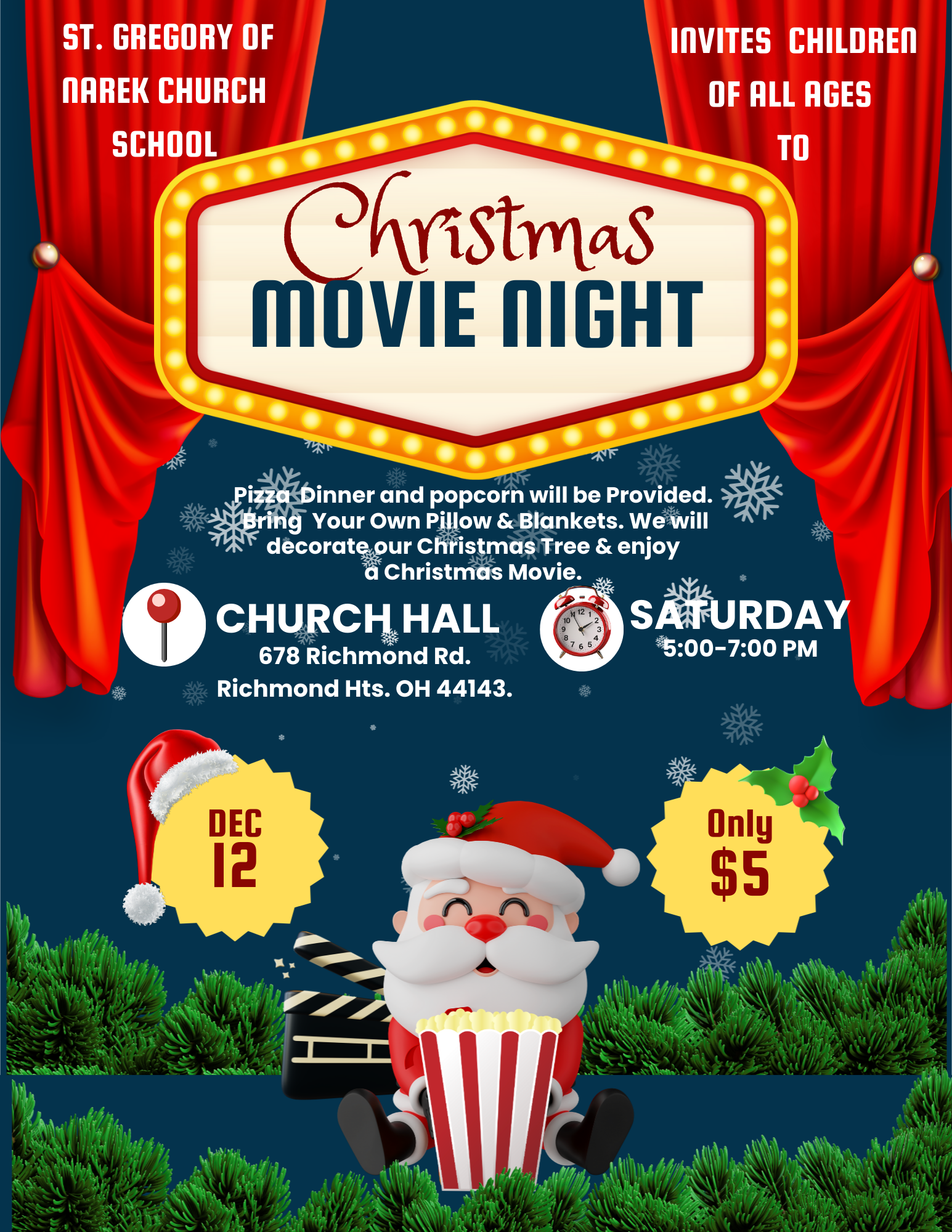 Join us for a fun Christmas Movie Night hosted by the Church School! Friday | December 12, 2025 5:00 pm St. Gregory of Narek Church Hall Women’s Guild Christmas Outing Saturday | December 13, 2025 All Day Christmas Outing Saturday | December 13, 2025 All Day 12